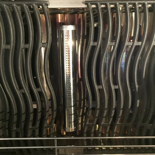 Câest une boite en triangle ou cylindrique, percĂ©e de trous quâon place entre deux dĂ©flecteurs du barbecue gaz. On aura mis des copeaux de bois prĂ©alablement trempĂ©s dans lâeau pendant un minimum de 2 heures pour les imprĂ©gner dâeau. La chaleur va faire sâĂ©vaporer lâhumiditĂ© contenue dans les copeaux de fumage, communiquant ainsi lâarĂŽme de lâessence bois choisie aux aliments. Cette forme de fumage convient bien au poulet, au porc, aux poissons, aux lĂ©gumes.