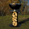 Ses matériaux sont d’une grande robustesse. Ses trois pieds sont solidement ancrés dans le sol et attachés les uns aux autres pour supporter plus facilement la charge de bois dans sa cuve.