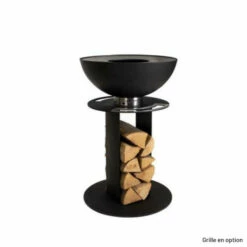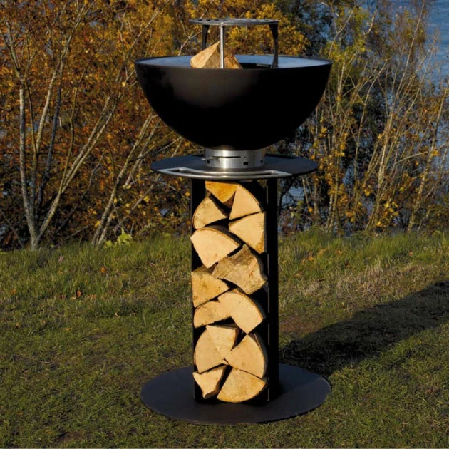 - Le rangement à bois complÚte parfaitement la conception brute et originale du braséro