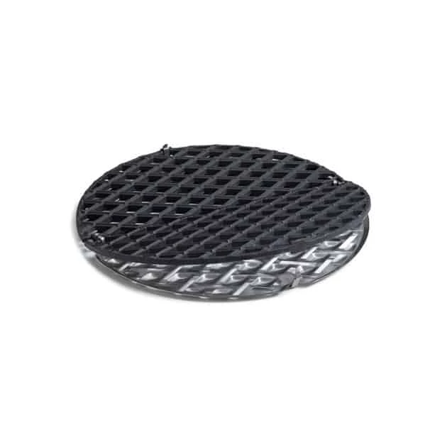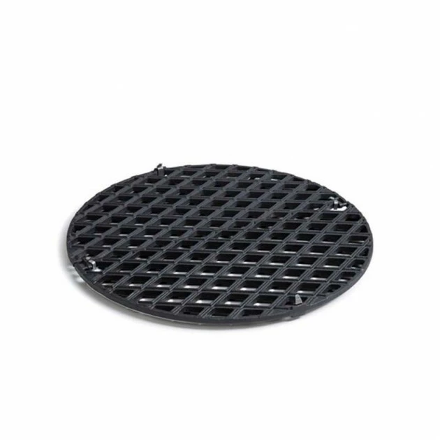 Cette grille en fonte peut se séparer en deux pour se rend plus facilement manipulable.