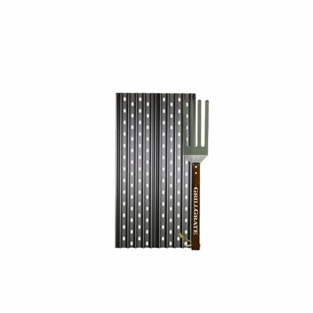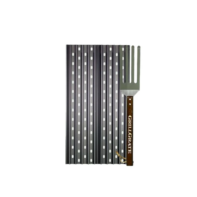 La conception de cette grille permet la création d’une cuisson infra-rouge. Les rainures regroupent la chaleur, l’aluminium collecte le rayonnement de la chaleur dans la cuve et le canalise vers le haut à travers les tiges transversales. Des températures excellentes sont ainsi générées directement sur les tiges et permet des cuissons parfaites et un superbe marquage de vos aliments.