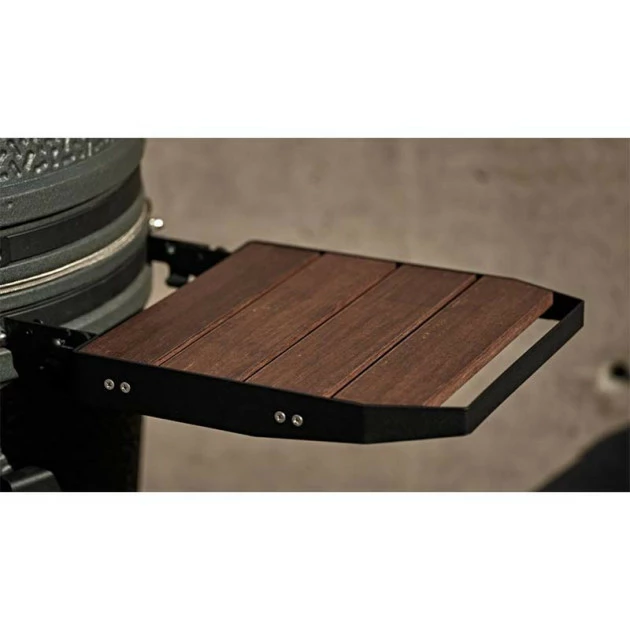 - Les tablettes du chariot sont en bambou de haute qualité, combiné à un cadre en acier nouvellement conçu, et une charnière d’arrêt spécialement conçue pour protéger la tablette et la céramique du kamado.