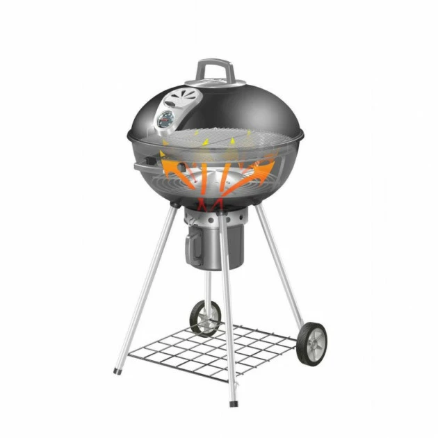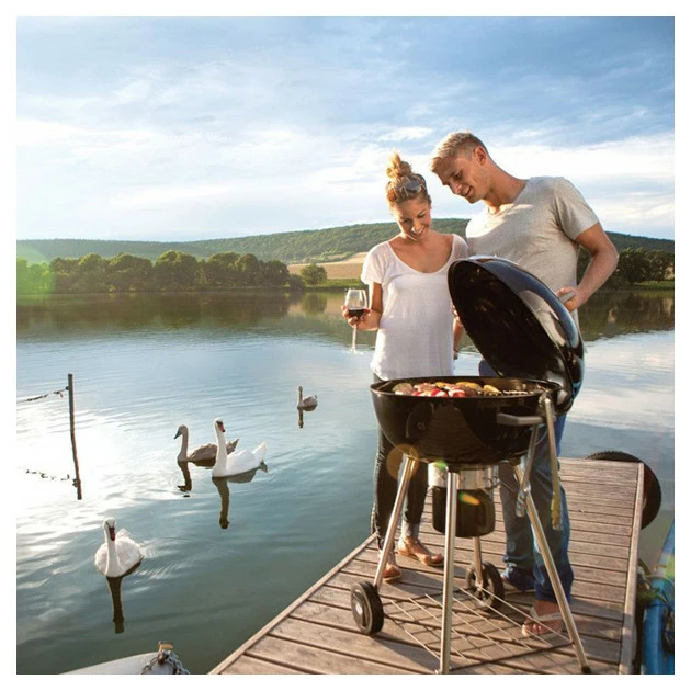 Le barbecue Napoléon Charcoal Kettle est pratique et robuste. Il est équipé d’un récipient à cendres amovible de grande capacité en acier de gros calibre pour faciliter le nettoyage. Il est monté sur deux roues, idéal pour le déplacer et possède un diffuseur de chaleur en acier inoxydable.