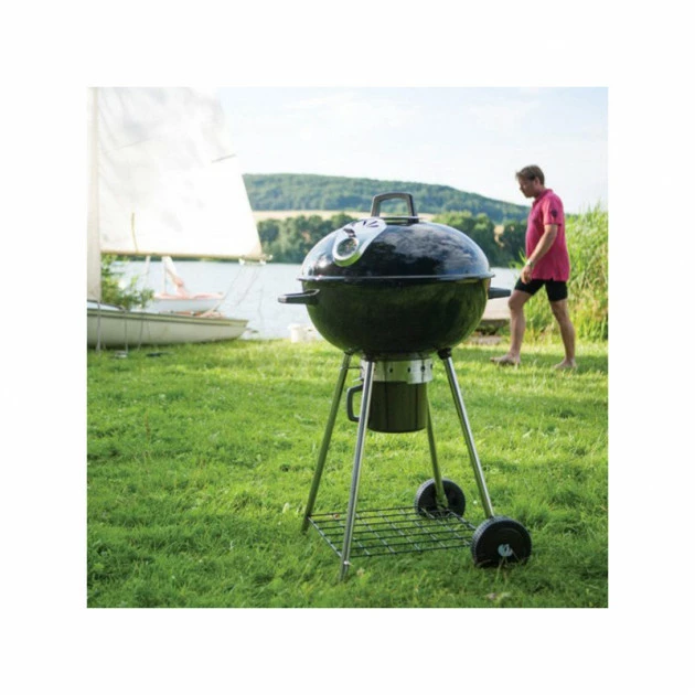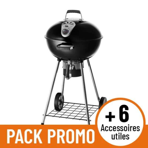 Le barbecue Napoléon Charcoal Kettle est pratique et robuste. Il est équipé d’un récipient à cendres amovible de grande capacité, en acier de gros calibre, pour faciliter le nettoyage. Il est monté sur deux roues, idéal pour le déplacer et possède un diffuseur de chaleur en acier inoxydable.