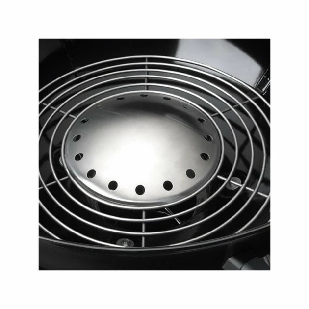 Il est important de pouvoir contrôler la chaleur et la circulation de l’air. Le diffuseur de chaleur en acier inoxydable distribue uniformément la chaleur et évacue le charbon consumé dans le récipient à cendres. Le système de contrôle d’air PRO amélioré assure une circulation d’air plus efficace et un contrôle précis de la température tout en empêchant l’eau de s’infiltrer dans le grill. Le couvercle dispose d’un crochet intégré et d’une poignée isolante qui protège vos mains de la chaleur.