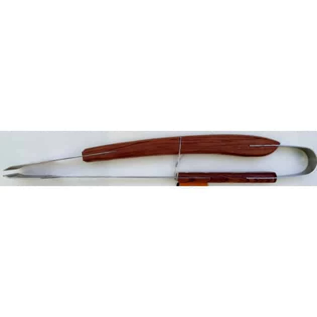Cette pince Barbecue Republic convient aux barbecues gaz ou charbon et/ou aux planchas. Elle permet de retourner n’importe quel aliment, de la viande, des lĂ©gumes, du poisson. Cet accessoire barbecue est dotĂ© de deux manches en bois de palissandre pour une meilleure prise en main. Cet accessoire barbecue est rĂ©sistant face Ă la corrosion. A dĂ©couvrir dans nos magasins Barbecue & Co.